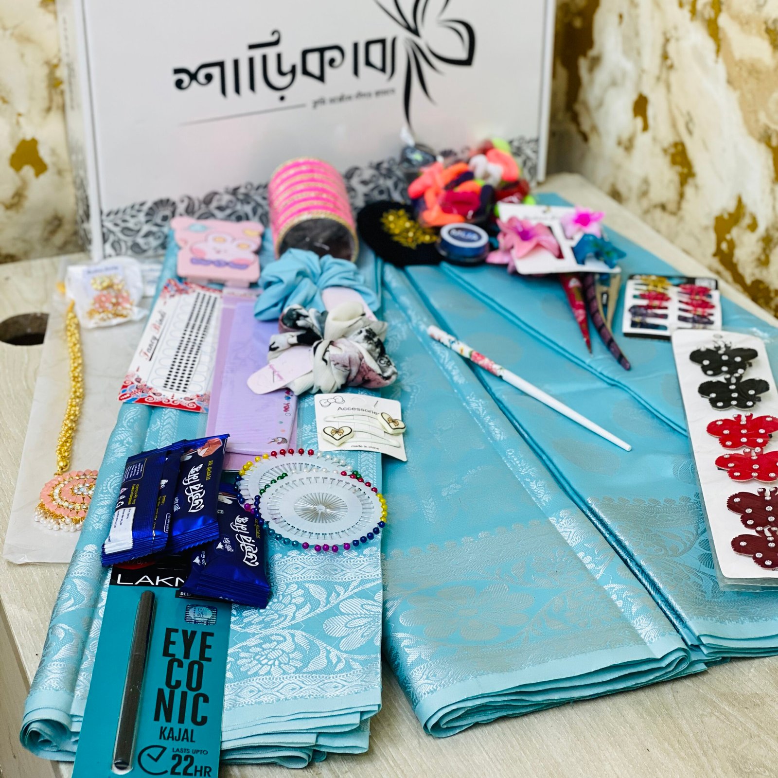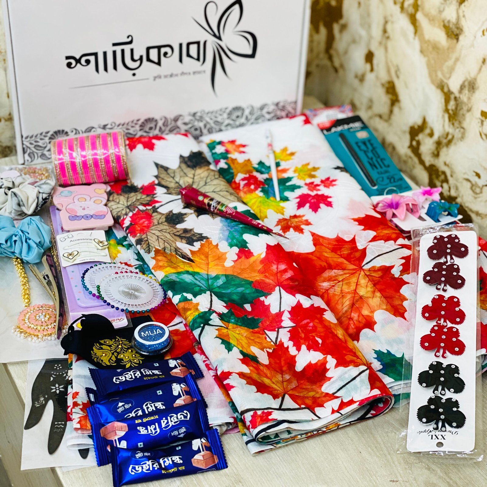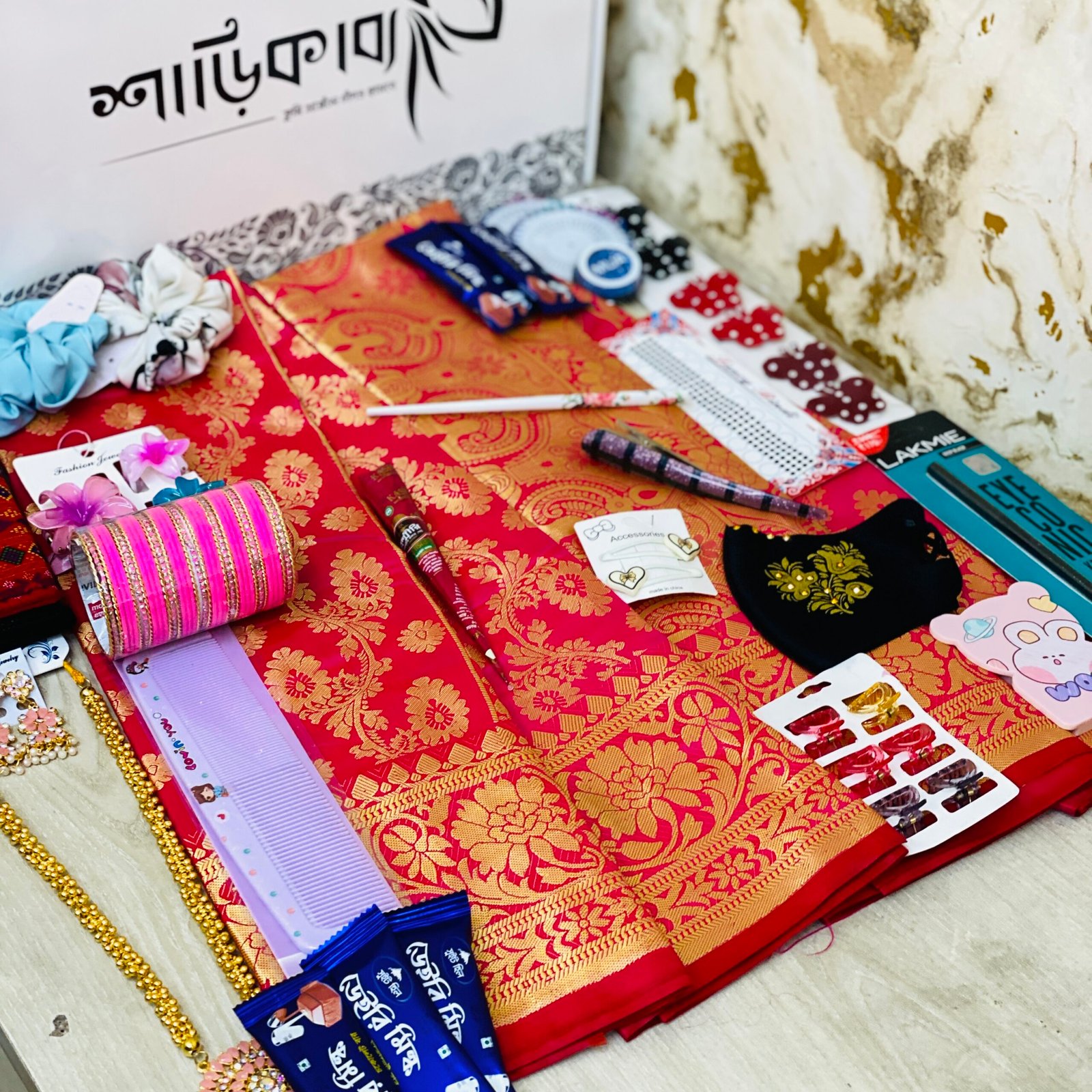 "স্বামী যখন দিল এই গিফট বক্সটা, আমি ভেবেছিলাম শুধু শাড়ি থাকবে। খুলে দেখি চুড়ি, লকেট, আয়না—২৭টি সারপ্রাইজ!"